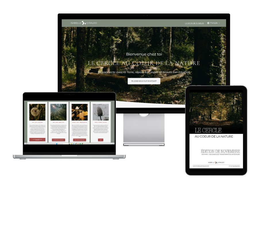 Tu auras accès à la plateforme de contenu : workbook du mois avec des invitations à tenir un journal et des pratiques intérieures et extérieures ancrées dans la nature qui s'alignent sur le cycle actuel de la Terre.